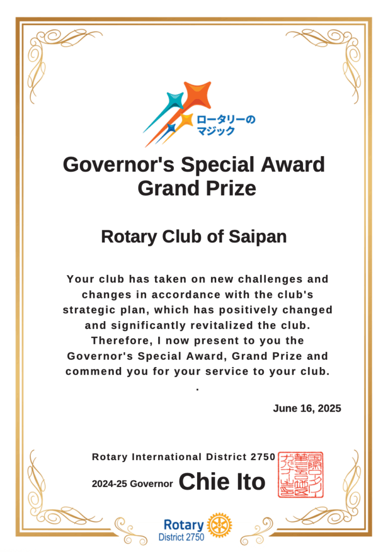 Governor’s Special Award recognizes outstanding achievements by clubs within a district, often for exceptional service, leadership, or contributions to the Rotary Foundation. It can be awarded for various accomplishments, including significant projects, impactful community service, or strong engagement in Rotary’s areas of focus.