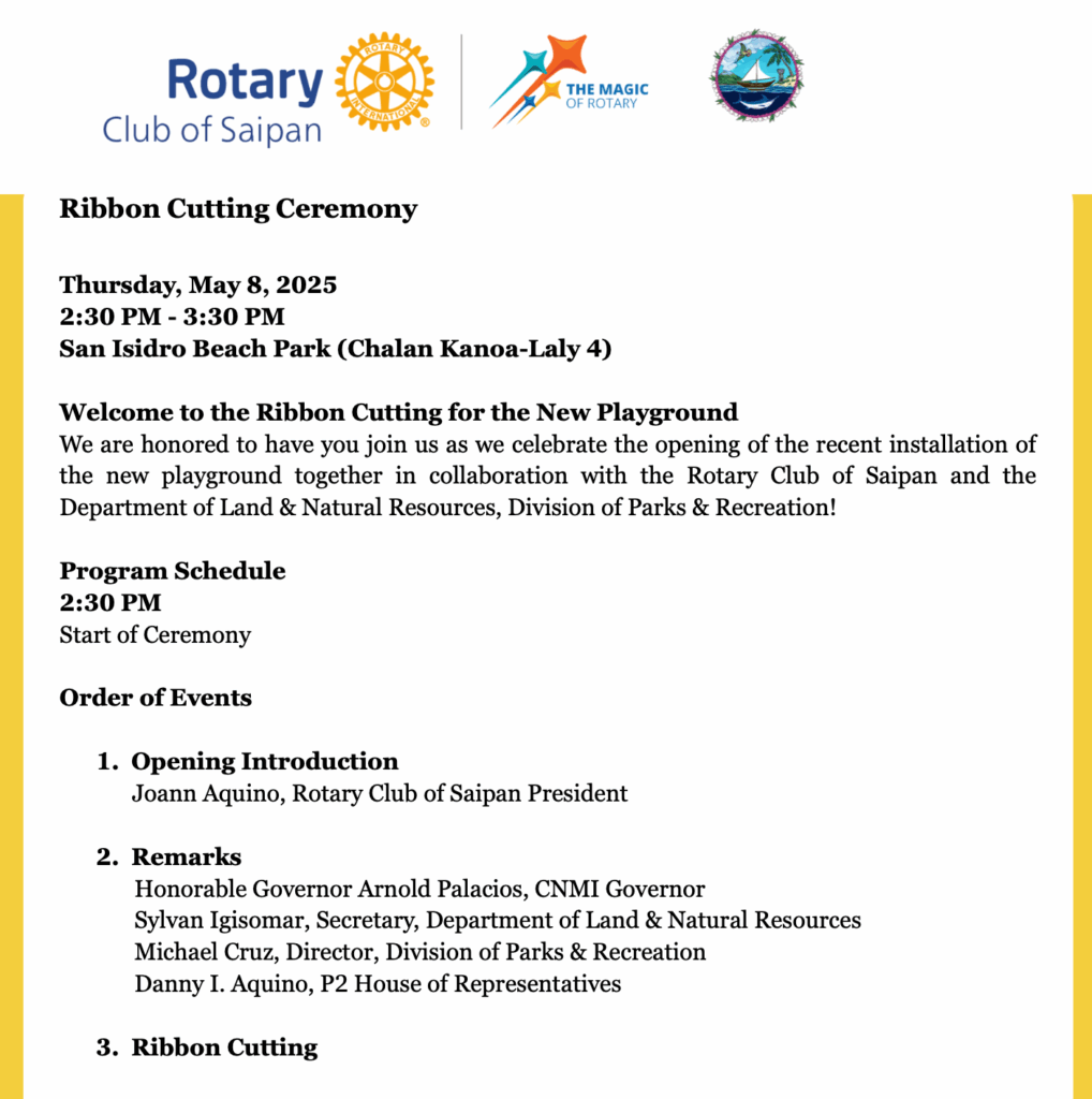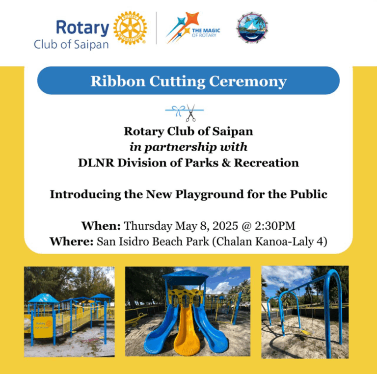 Rotary Club of Saipan in partnership with the Department of Land and Natural Resources, Division of Parks and Recreation is excited to present the brand new playground for the San Isidro Beach Park, located in Saipan.